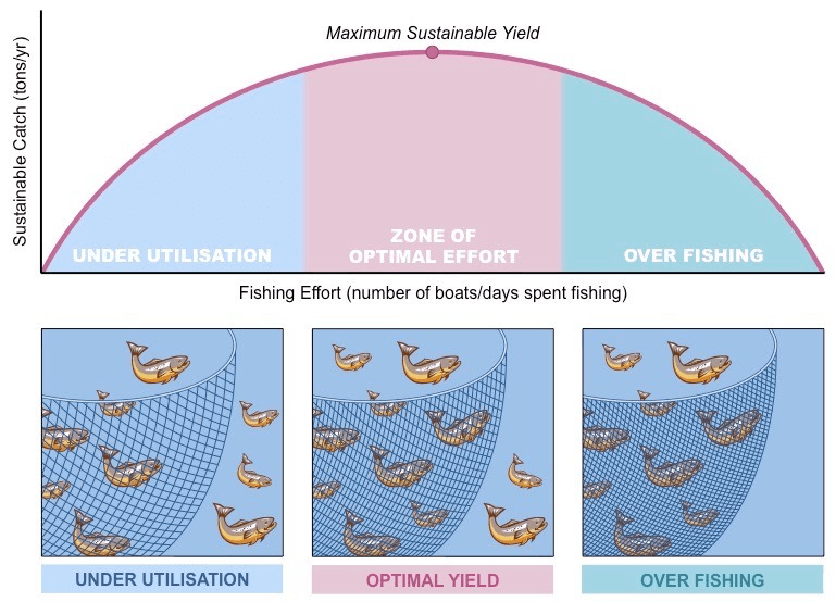 The term sustainable yield refers to the harvest of a specific natural resource. This refers to the amount of harvest /capture that can occur while maintaining the population’s stability. The maximum sustainable yield for example anchovies is the highest possible annual catch that can be sustained over time, by keeping the stock at the level producing maximum growth. If your yield is sustainable, the base of your population remains unaffected and you are able to exploit anchovy regularly and over the long term.